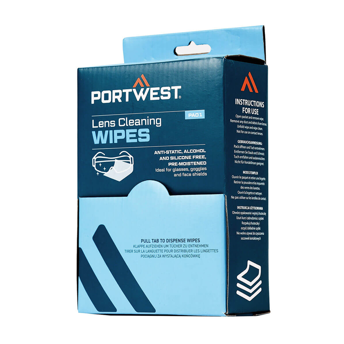 Description : Boîte distributrice de lingettes nettoyantes prêtes à l'emploi. Cette boîte contient 100 lingettes emballées individuellement, mesurant 13 cm x 20 cm chacune.